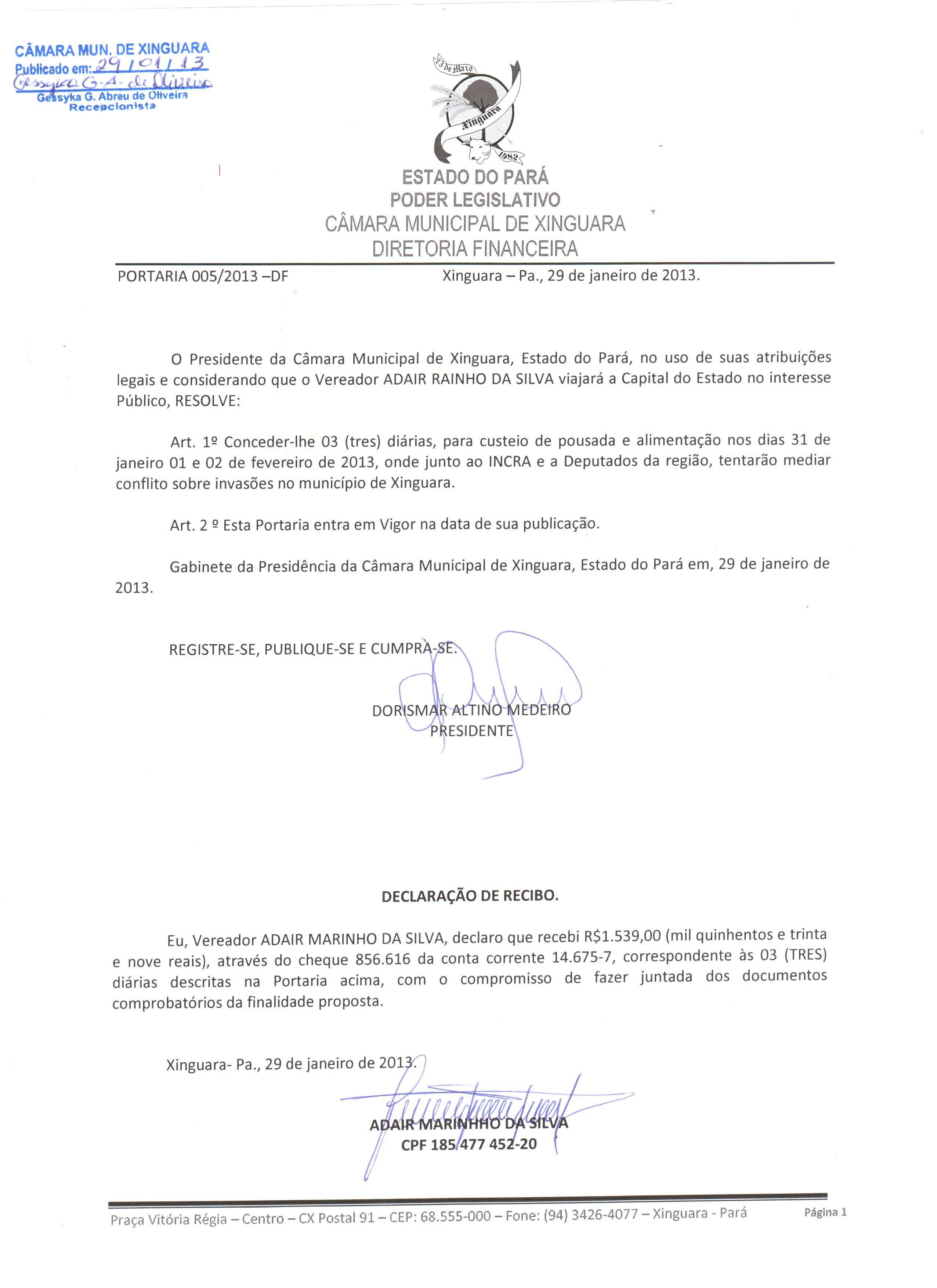 PORTARIA Nº 005/2013 – DF